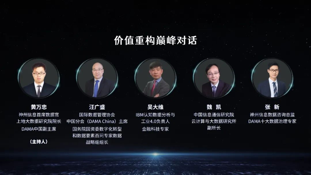 圆桌对话由黄万忠主持,汪广盛、魏凯、吴大维、张新等参与对话,围绕数据要素、数字化转型、数据资产盘点、数据价值评估、数据伦理与法规等展开深入交流与探讨。