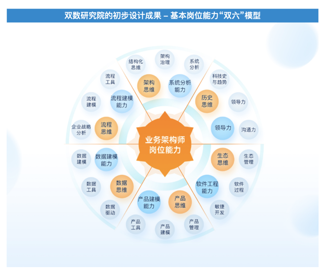 对于不同规模的企业,业务架构师培养的初期也可以有不同的起步方式。比如,中小企业根据需求可以聚焦在架构思维、流程思维、流程建模能力、数据思维、数据建模能力、产品思维、产品建模能力上。对于不同能力层级的架构师,学习内容也可以不同,比如初级业务架构师可以先不学习系统分析等内容,随着职业发展的进阶,增加能力学习内容,这些能力搭配方式企业可以根据实际情况设计,“双六”模型只是给出了作为参考的能力集合。