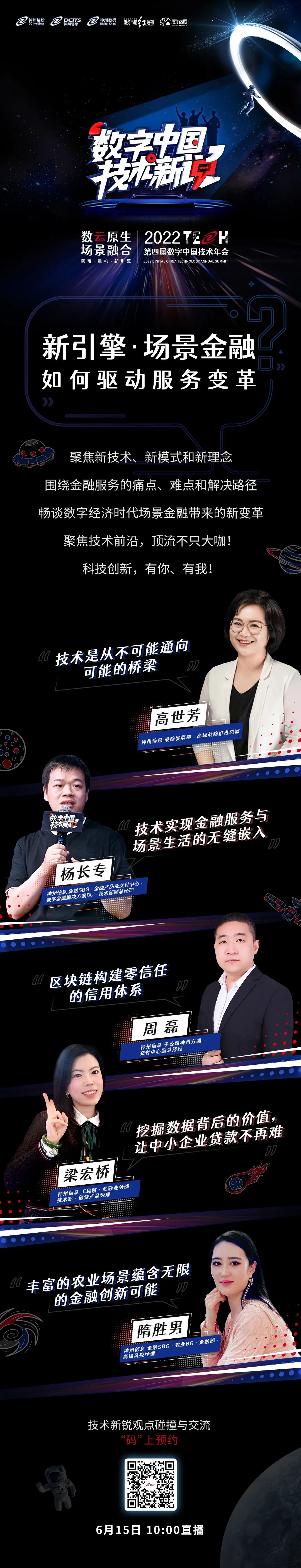 还有两周,复赛即将结束,各位选手可能正如火如荼地准备着他们的参赛作品。为了帮助大家加深对赛道的理解,打破思维瓶颈,我们特别邀请神州信息多位青年技术专家,6月14、15日连续两天上午10点,围绕“新引擎·场景金融”“价值重构”话题进行探讨讲解,涵盖本次赛事相关的场景金融、金融营销模型、风险识别、区块链、数据挖掘、数据分析等多项热点技术,开启场外限时支援!
